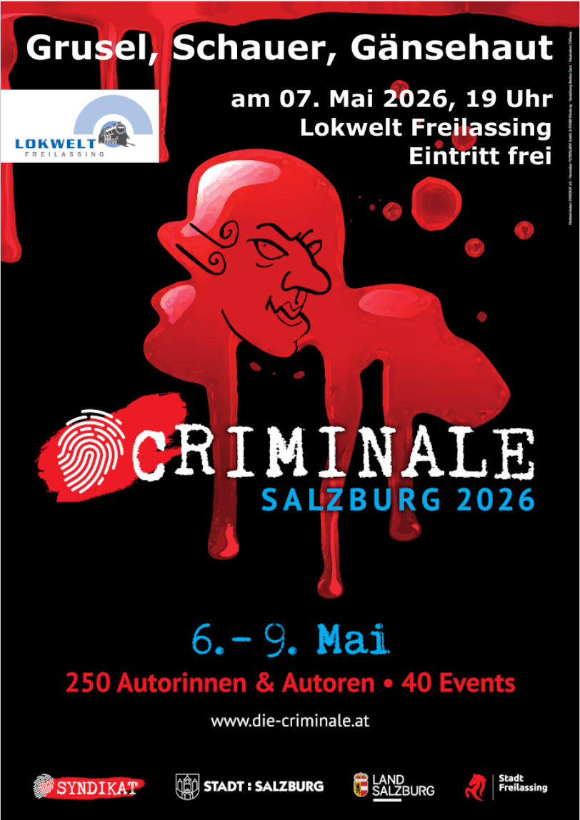 Die Welt der Krimiliteratur blickt am 7. Mai auf Freilassing. Europas größte Krimitagung, die CRIMINALE kommt mit einem besonderen Höhepunkt in die Lokwelt. Europas größte Krimitagung bringt zwölf der bekanntesten Bestsellerautorinnen und -autoren der deutschsprachigen Krimiszene auf die Bühne. Sie lesen unter dem Motto „Schaurige Orte“ aus ihren Werken. In kurzen, pointierten Lesepassagen von jeweils fünf Minuten entfalten sich düstere Schauplätze, Gänsehautmomente und nervenaufreibende Spannung – abwechslungsreich, intensiv und garantiert fesselnd.